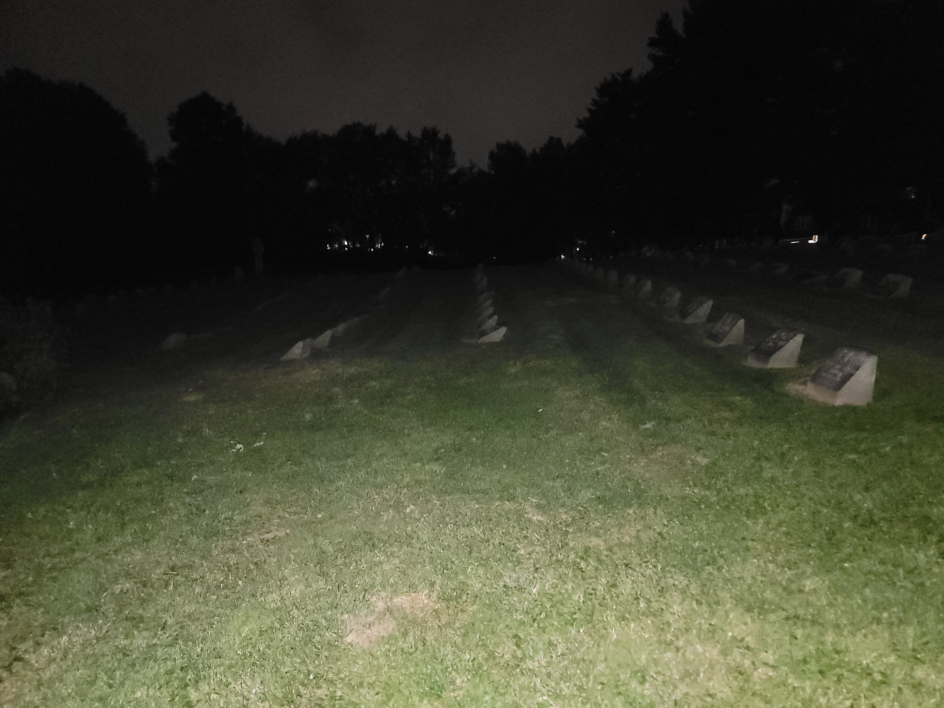 The park stretches into a large grassy area right past the little woods. The grass in the park rolls for a spell to the end of a cul-de-sac that ends at a street named Ringgold. On Ringgold there is a cemetery, I’ve walked by it few times now, mostly in the day, and a couple of times past sunset. I hadn’t made it down on one of my night patrols yet.